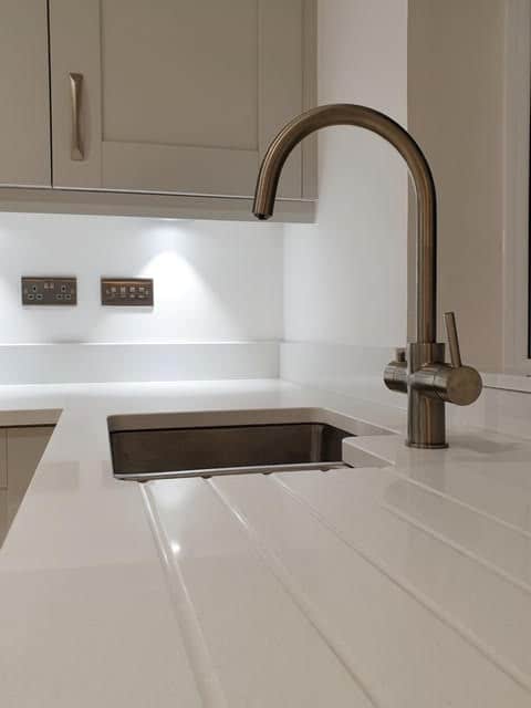 5. Drainer Grooves: Drainer grooves are functional and stylish. These grooves are cut into the worktop next to the sink, allowing water to drain directly back into the sink instead of pooling on the surface or running off the edge.
